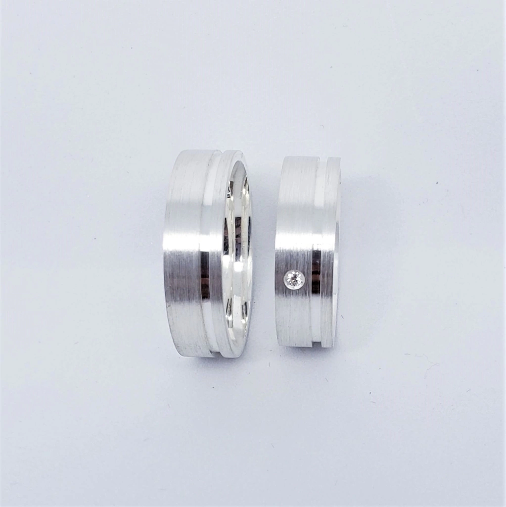 Aliança 1: Reta fosco escovado com uma cava lateral e uma pedra zircônia