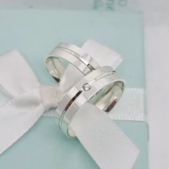 Aliança 1: Reta polida com um canal central e uma pedra de zircônia